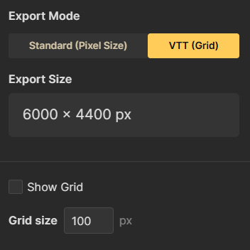 The settings [shown] are what I used for my full map, which worked well when transferred to Roll20.